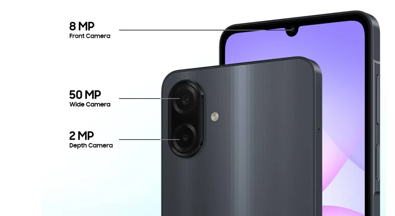 Phía trước, Galaxy A07 sở hữu camera selfie 13 MP, hỗ trợ chụp chân dung xóa phông và làm đẹp tự nhiên bằng AI. Ống kính này không chỉ phù hợp với những ai thích selfie mà còn đáp ứng tốt nhu cầu gọi video hoặc học trực tuyến với chất lượng hình ảnh sắc nét, màu da hài hòa.