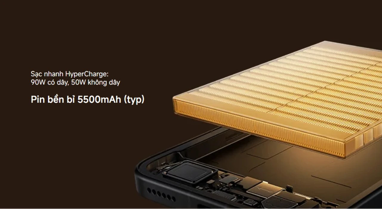 Điểm nổi bật là công nghệ sạc nhanh 120 W HyperCharge, giúp sạc đầy 100% chỉ trong khoảng 19 phút - một con số ấn tượng trong phân khúc flagship. Bên cạnh đó, thiết bị còn hỗ trợ sạc không dây 50 W và sạc ngược 10 W, mang đến sự linh hoạt trong mọi tình huống sử dụng.