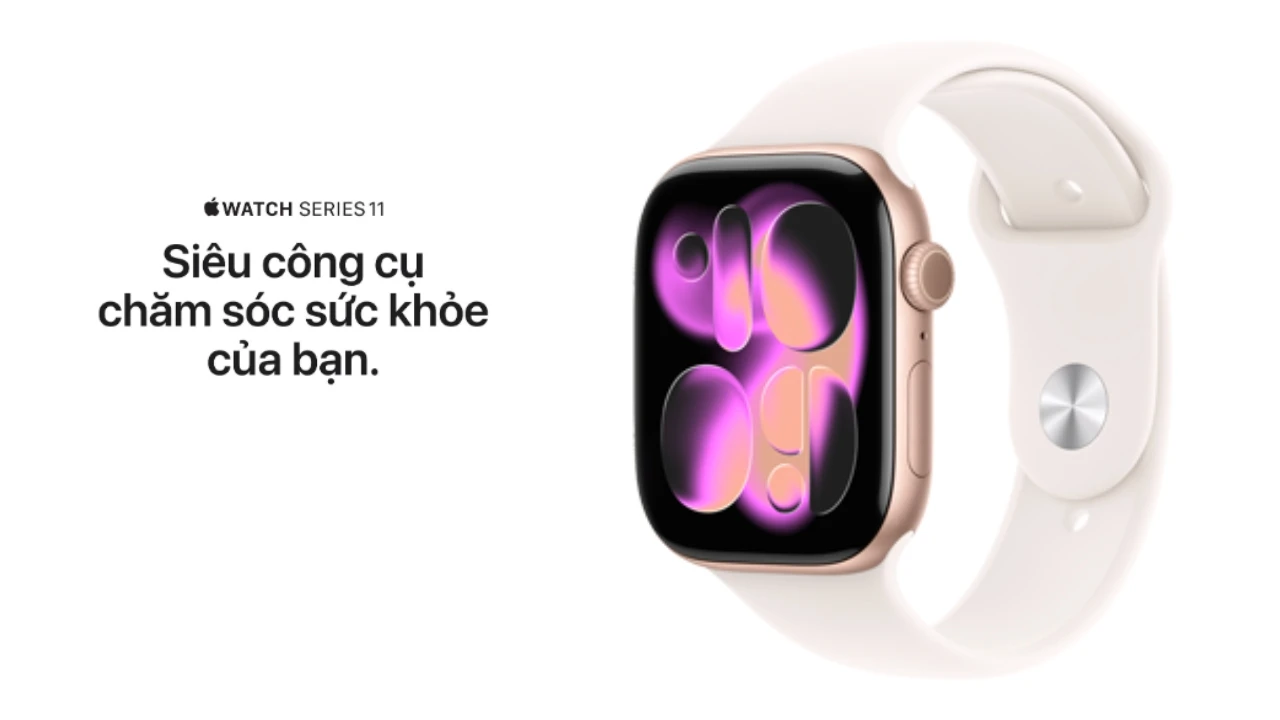 Với phong cách chế tác hoàn mĩ, Apple Watch Series 11 chinh phục thị giác bằng vẻ thanh mảnh và trọng lượng siêu nhẹ. Khung viền ôm sát cổ tay, kết hợp với sự đa dạng sắc màu gồm Vàng Hồng, Bạc, Đen Bóng và Xám Không Gian, tạo nên một phụ kiện vừa thời thượng vừa tiện dụng.