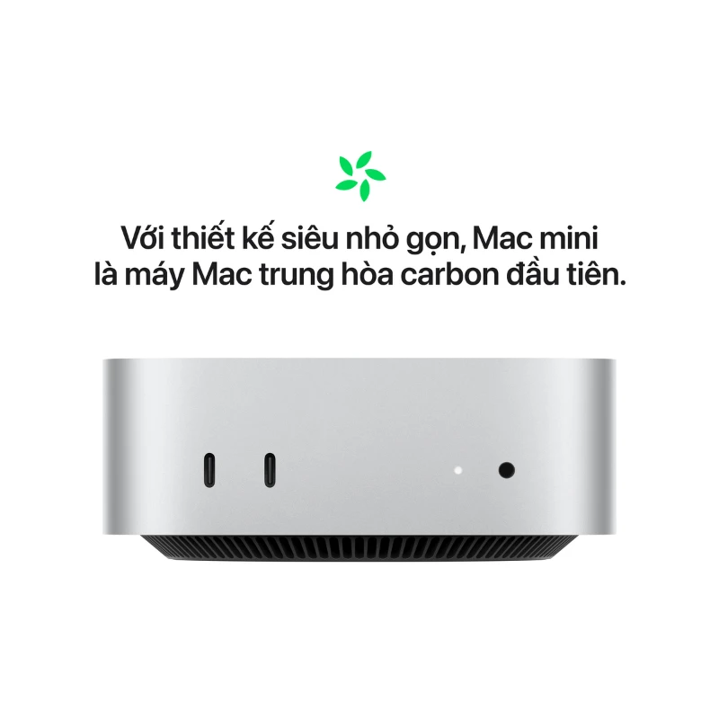 Mac mini M4 2024 sở hữu kích thước nhỏ gọn hơn so với các phiên bản trước, chỉ 12,7 x 12,7 x 5 cm và nặng khoảng 0.67 kg. Điều này giúp sản phẩm trở thành lựa chọn lý tưởng cho các không gian làm việc hạn chế hoặc đối với người dùng thường xuyên di chuyển. Thiết kế nhôm nguyên khối mang đến vẻ đẹp hiện đại, sang trọng, đồng thời đảm bảo độ bền bỉ trong suốt quá trình sử dụng.