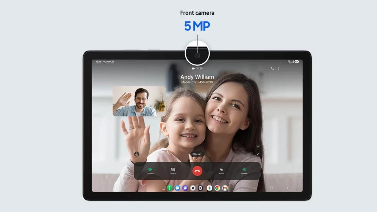 Samsung Galaxy Tab A11 Plus WiFi 6GB 128GB được trang bị camera trước độ phân giải 5 MP, đáp ứng tốt nhu cầu gọi video trong học tập và làm việc từ xa. Hình ảnh hiển thị rõ ràng, hỗ trợ giao tiếp hiệu quả trong các buổi học online, họp trực tuyến hoặc trao đổi nhóm.