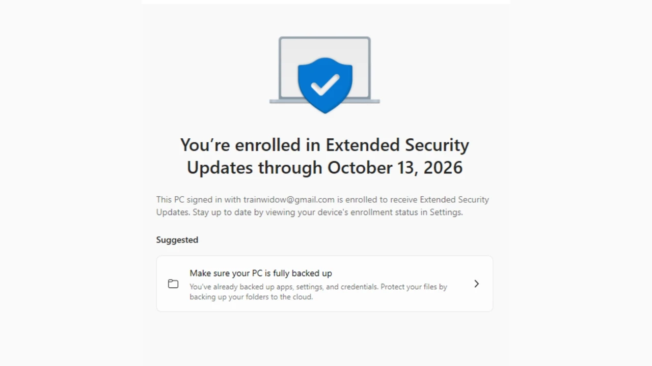 Hệ thống cho phép chọn sao lưu thiết lập PC trước khi kích hoạt ESU. Cách này miễn phí, yêu cầu đăng nhập tài khoản Microsoft và mất ít thời gian để đồng bộ dữ liệu.