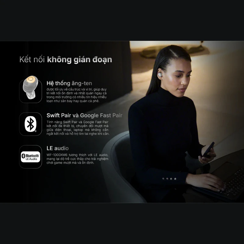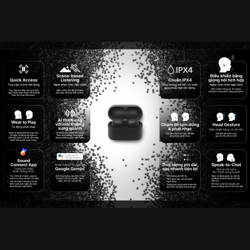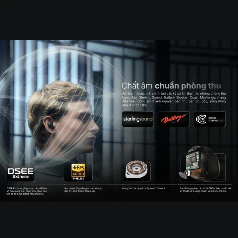 | Công nghệ âm thanh | Chống ồn chủ động Driver dynamic DSEE Extreme (Cơ chế tăng cường âm thanh kỹ thuật số) Hi-Res Audio Wireless Ambient Sound |